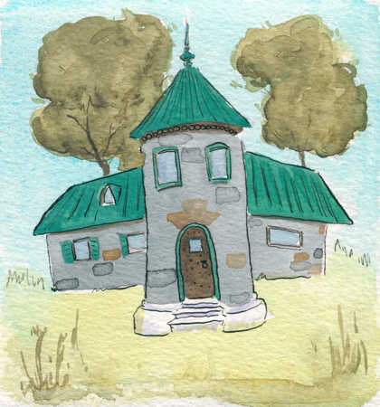 Original painting, inspired by the gardeners cottage in a local public park, the patina on copper roofs is such a beautiful thing. This would be all the castle I need to feel like royalty.