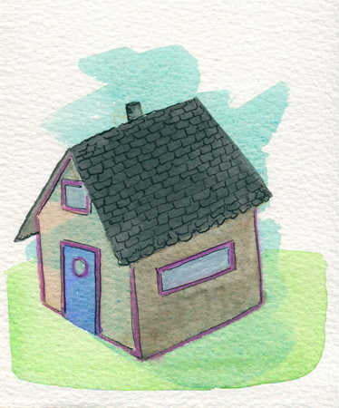 This original painting, another compact bungalow is really starting to show me what I'm looking for in somewhere to live. The purple trim is a bold choice.